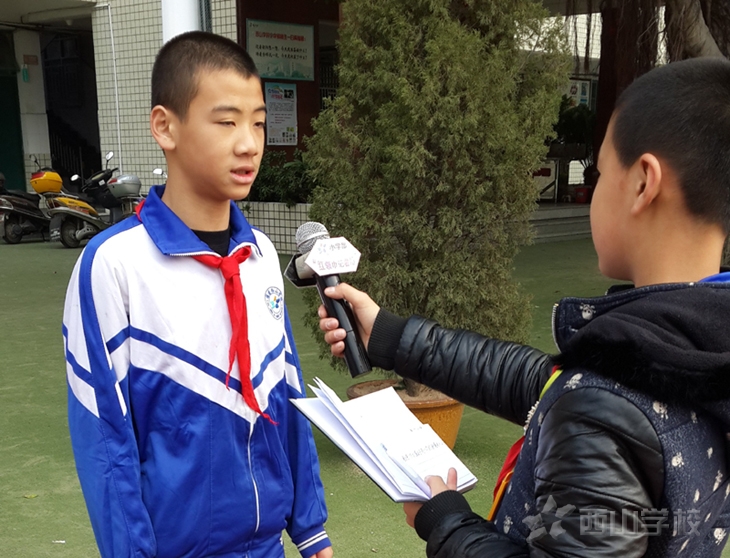 小学部值日干部王驰在接受采访