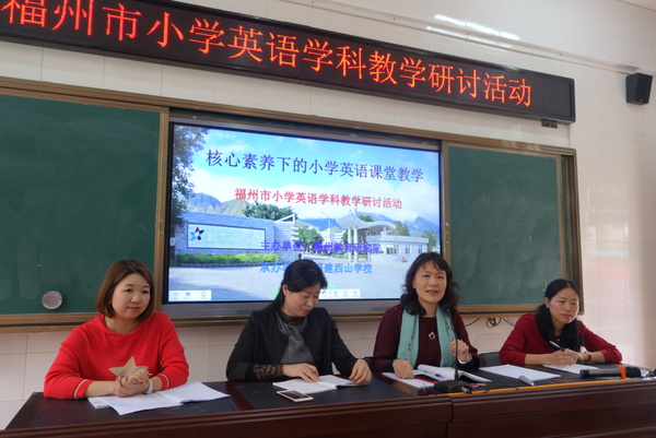 福州教育研究院教研员郭琳榕、仓山区第六中心小学党委副书记王英、福州市洪山小学副校长赵晓宇、福州市台江区教师进修学校教研员林玉华 、福清教师进修学校教研员陈天心、闽侯县教师进修学校教研员吴铮、原乌山小学校长林茂、宾夕法尼亚的外国友人Christina、福建西山学校办公室副主任陈其藩、刘文国莅临活动现场。本次活动由西山学校小学部教科处副主任杨志娟主持。