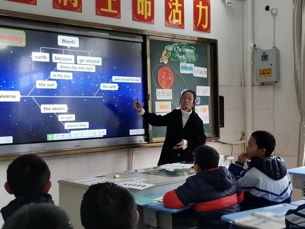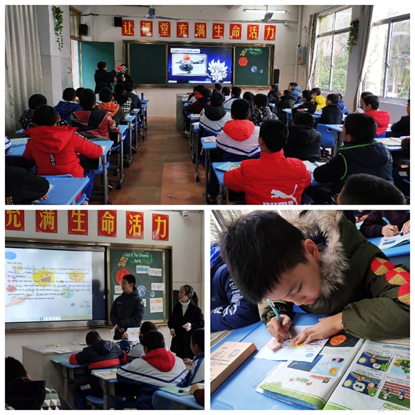 郑郭玲老师以视频导入课堂,带领学生探索宇宙,激发学生的好奇心与求知欲。为了帮助学生尽可能多地回忆并运用学过的知识,郑老师借助多媒体突破了时空的局限性,创设贴近真实的语言环境和用语情景,让学生在体验、实践、参与、合作和交流中快乐地学习,轻轻松松完成学习任务。并在情景中树立说英语的信心,从而提高课堂的教学效率。