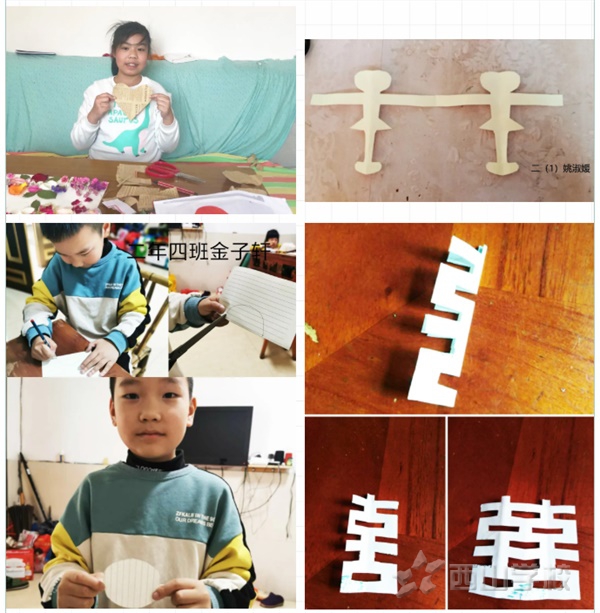 延期开学期间,二年级的孩子们运用所学知识动手制作了一系列的手工作品,有喜庆的双喜,有对称精美的房子,更有为武汉祈福加油的爱心。他们在玩中学、学中思,不亦乐乎。